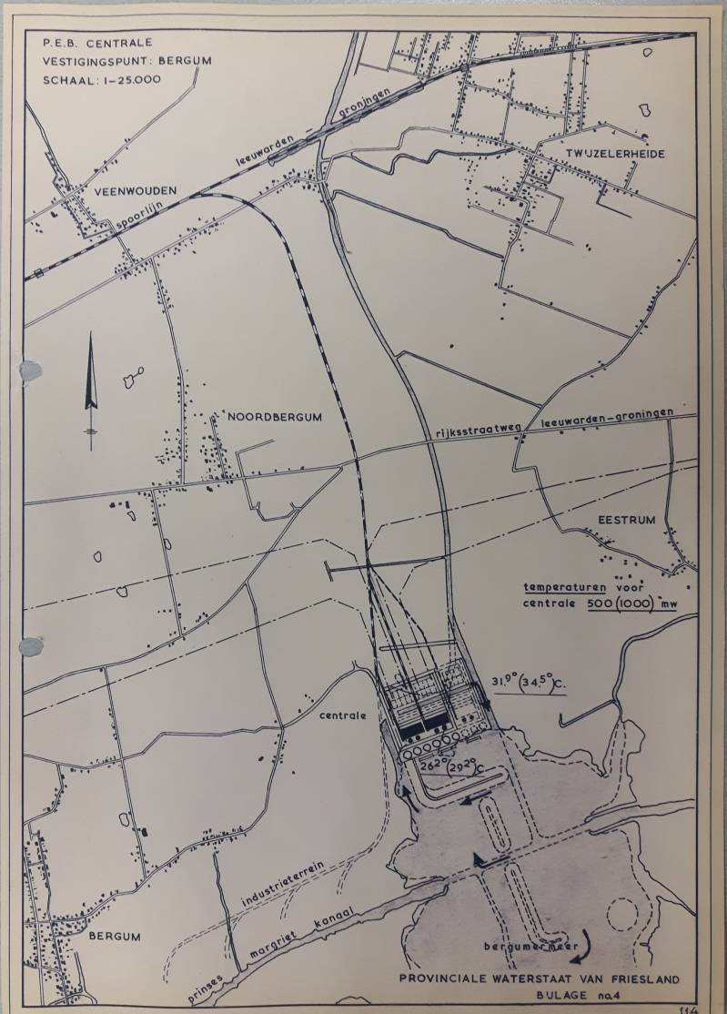In mei 1964 heeft Gedeputeerde Staten het besluit genomen dat de centrale bij Bergum aan de noordzijde van het Bergumermeer moet worden gebouwd, een besluit dat in juli wordt bekrachtigd door Provinciale Staten met 31 stemmen voor en 16 stemmen tegen. Het toeristische plan van de gemeente Tietjerksteradeel wordt hiermee compleet van tafel geveegd.