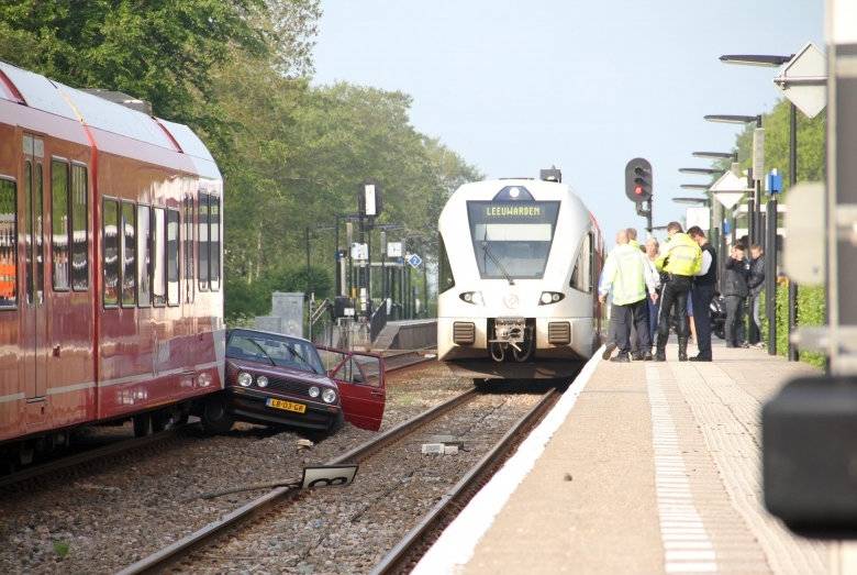 In Hurdegaryp wordt op 30 mei 2013 een auto circa 100 meter meegesleurd door een trein. Omstanders helpen de man uit de auto. Het blijkt dat hij lichte verwondingen heeft en wordt uit voorzorg naar het ziekenhuis in Leeuwarden gebracht. Hoe de man met zijn auto op de rails terecht kwam, vertelt het verhaal niet.