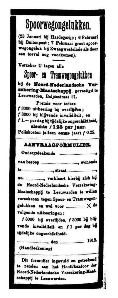 Er doen zich in korte tijd meer (bijna) spoorwegbotsingen voor. In februari botst bij Buitenpost een personentrein die wordt voortgetrokken door twee locomotieven achter op een goederentrein. Bij Zwaagwesteinde wordt een trein ongeval ter nauwer nood voorkomen. Daar blijkt een spoorstaaf te zijn gebroken, men denkt aan sabotage. Onmiddellijk reageert de verzekeringswereld met het aanbieden van een polis.