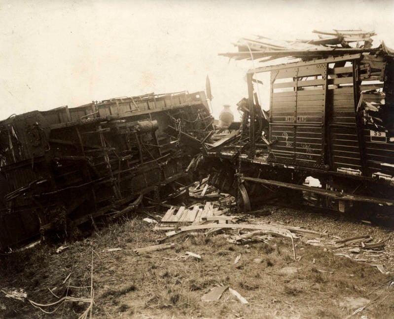 Op 24 januari 1912 rond 6.30 uur vindt er ongeveer 1 kilometer vóór het station van Hardegarijp, gerekend vanuit Leeuwarden, een treinbotsing plaats. Een goederentrein vanuit de richting Leeuwarden stopt op de doorgaande lijn van het station van Hardegarijp om daar goederen te lossen. Om de markttrein van Leeuwarden naar Groningen te laten passeren, rijdt de goederentrein, na te zijn gelost, een eindje terug in de richting van Leeuwarden om daarna naar de tweede lijn op te stomen. Nog voordat de goederentrein zich geheel op de tweede lijn bevindt, botst de markttrein uit Leeuwarden achterop de goederentrein. De 7 passagiers van de markttrein worden door de botsing stevig door elkaar geschud. Niemand raakt gewond.
