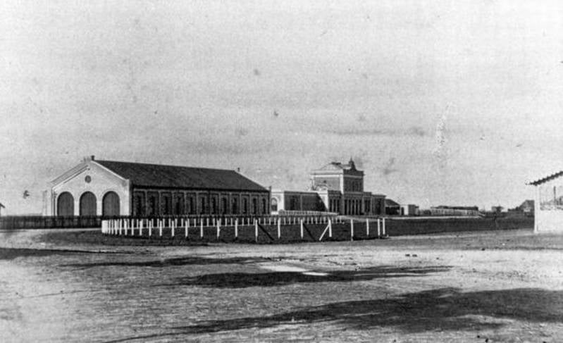Eind juli 1863 is men met het spoorleggen op de lijn Harlingen-Leeuwarden gevorderd tot het station van Leeuwarden.